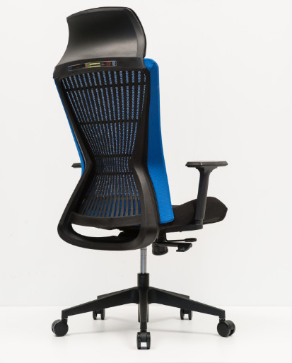 Dieser ergonomische Bürostuhl hat verstellbare Kopflehne, eingebaute Rückenstütze und Wasserfallsitzrandentwurf,